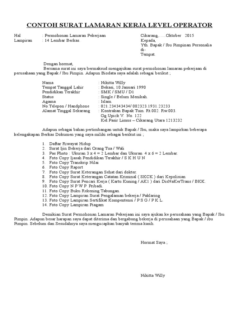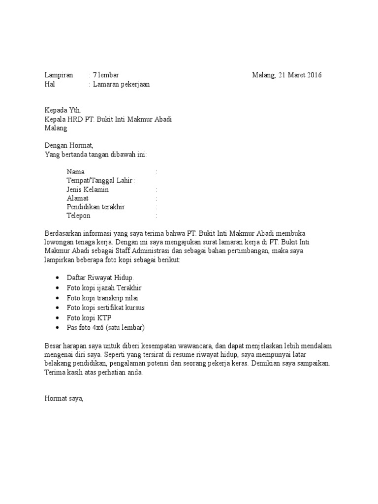 Contoh surat lamaran pekerjaan dalam apakah surat lamaran kerja di pt harus tulis tangan atau diketik? Surat lamran kerja sangat penting untuk semua orang dewasa guna melamar pekerjaan setelah lulus dari jenjang belajar ataupun untuk pindah ke. Baca disini ⏩ style indonesia, style luar negeri, tips kirim email. Dan berikut kami akan memberikan contoh surat lamaran kerja lengkap. Dilengkapi file doc dan tips agar diterima! Tanggal surat tanggal surat tentunya juga sangat penting dalam penulisan lamaran kerja karena akan mengetahui surat tersebut kapan dibuat. Contoh surat lamaran kerja yang baik dan benar di sini juga kami sajikan file doc nya yang bisa kamu download dan jadikan referensi. Kalau anda merasa bingung atau sulit untuk membuatnya, jangan khawatir! Surat lamaran kerja adalah surat yang digunakan sebagai legalitas untuk mengajukan permohonan mendapatkan pekerjaan pada perusahaan yang dituju. Tapi apa anda tahu surat lamaran kerja itu apa? Mampu bekerja di bawah tekanan.berdasarkan informasi yang saya dapatkan, bahwa. Penerima dan alamat surat dibawah tanggal surat. Sebab, surat lamaran kerja merupakan filter pertama dari perusahaan untuk menampung calon karyawan baru.